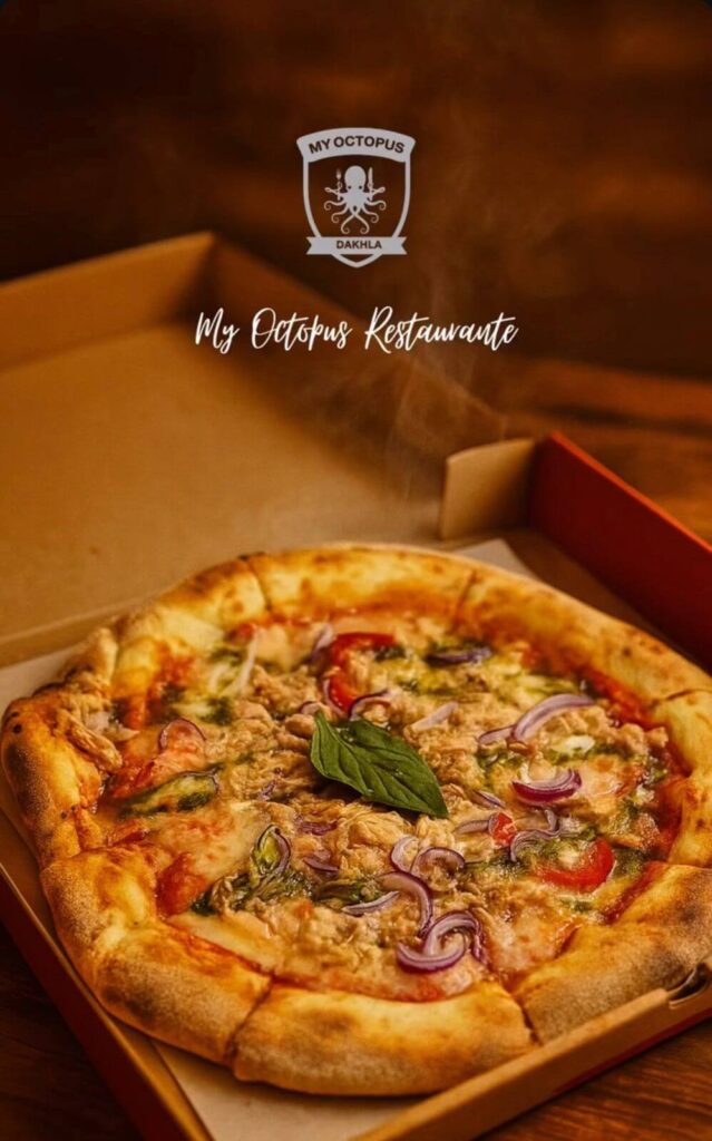 My Octopus is one of the best seafood restaurants in Dakhla, Morocco, known for its fresh Mediterranean flavors and relaxed seaside atmosphere. Located on Avenue Mohammed V, this Dakhla restaurant is a great choice for dinner, especially if you want to try grilled octopus and seafood paella. Prices are affordable, with dishes up to around 150 MAD (€14 / $15), and the restaurant does not serve alcohol. My Octopus is open daily from 3:00 p.m. to 11:30 p.m., making it an easy stop after exploring Dakhla Lagoon or the city’s waterfront.